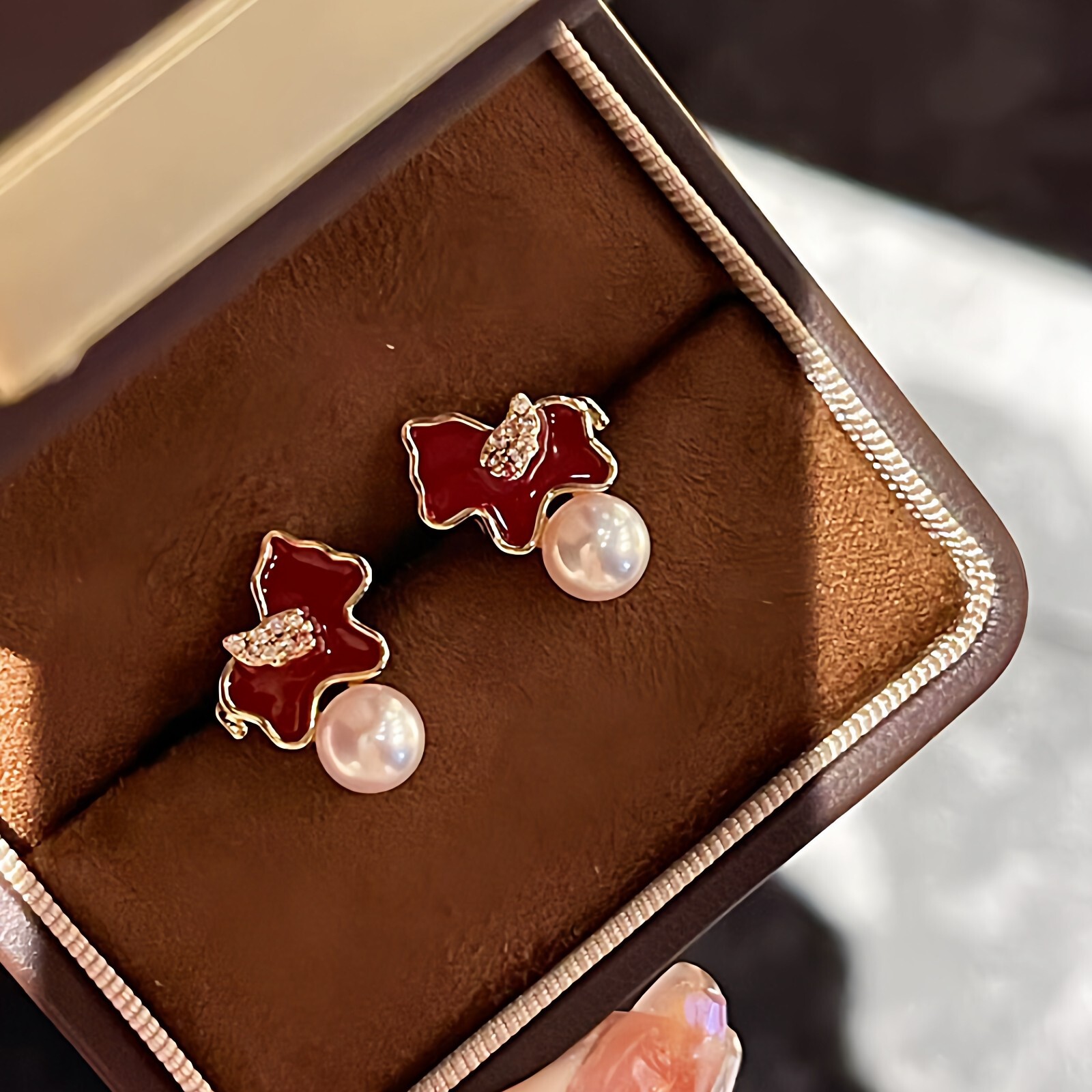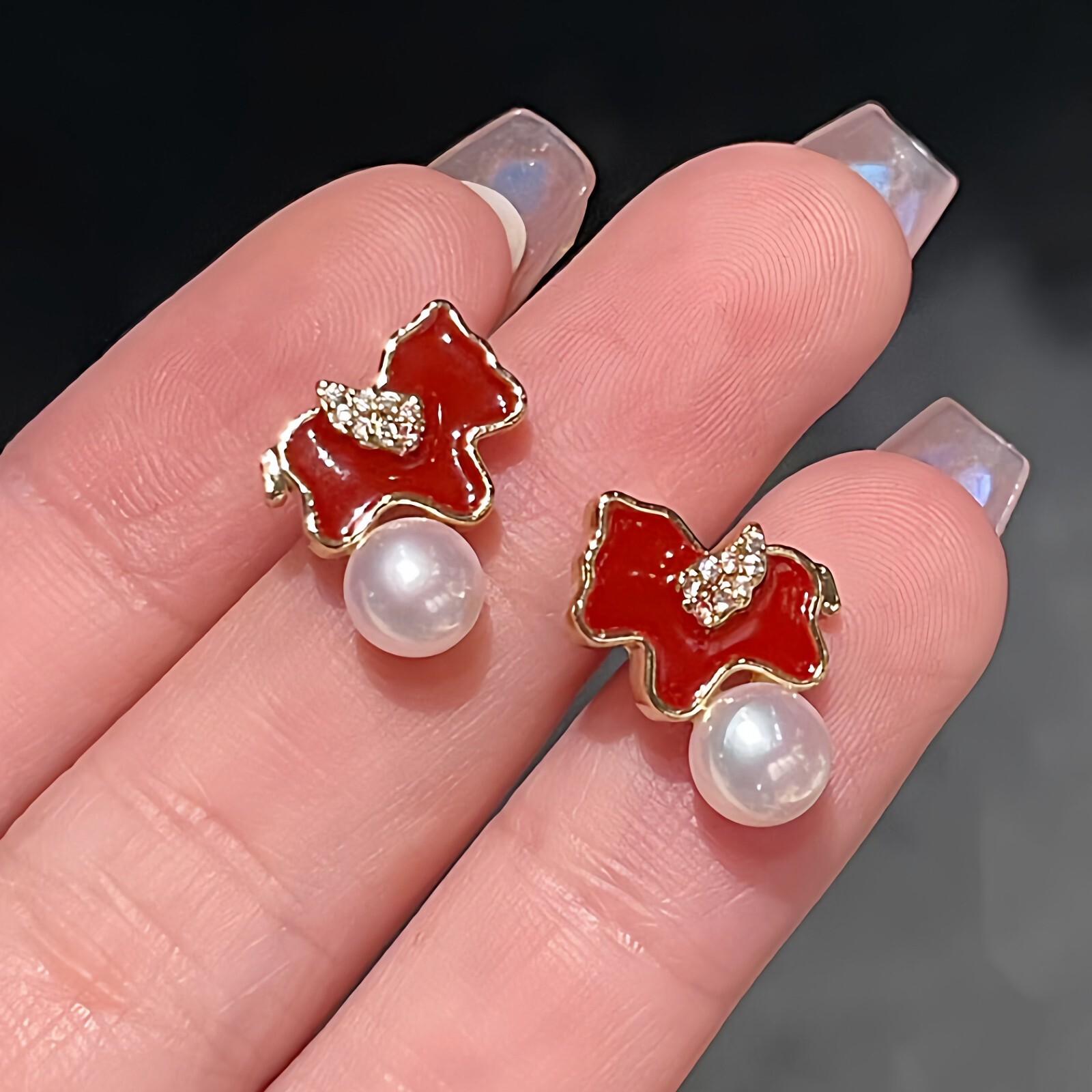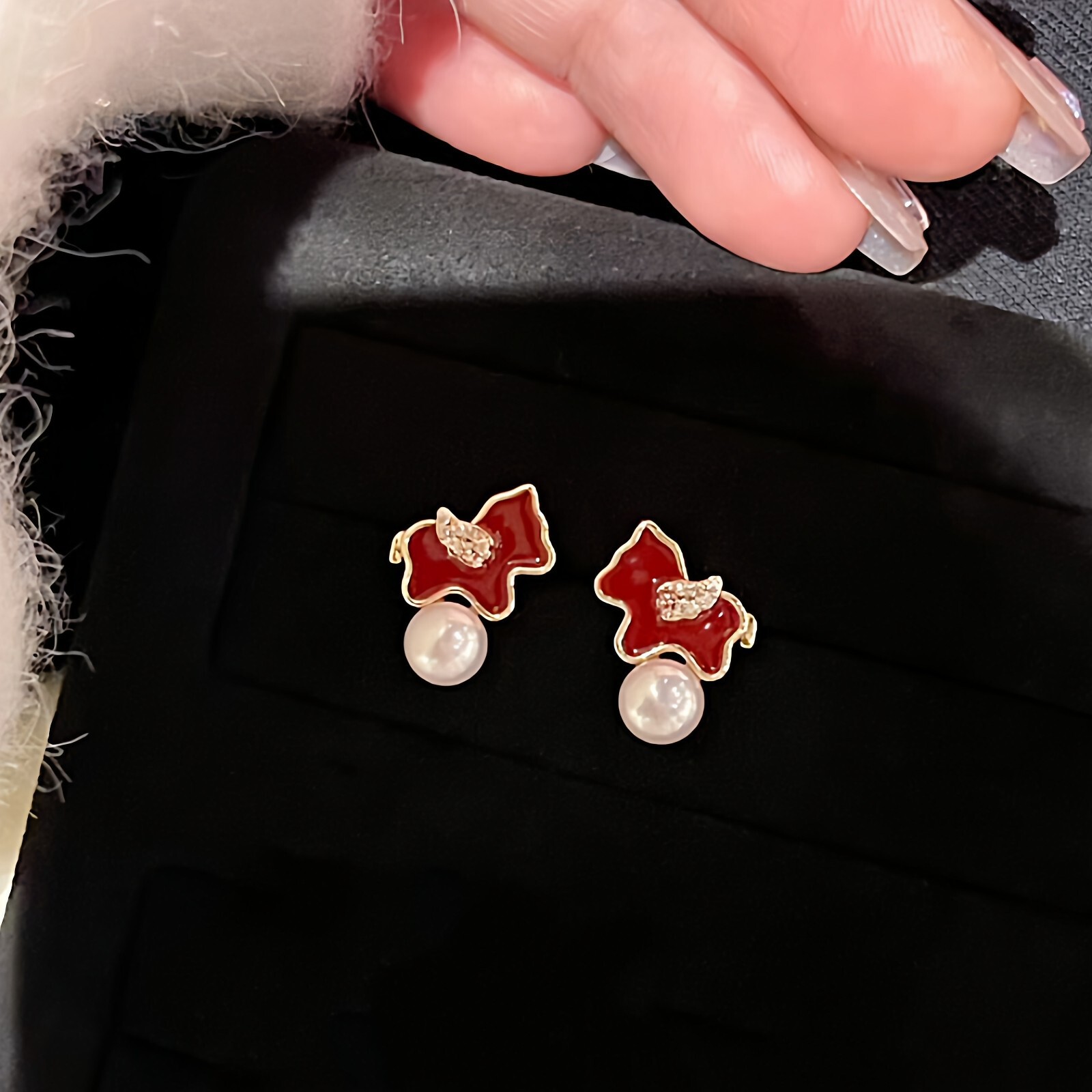 2026马上有钱诸暨淡水珍珠红色小马耳钉轻奢高级感气质本命年礼物