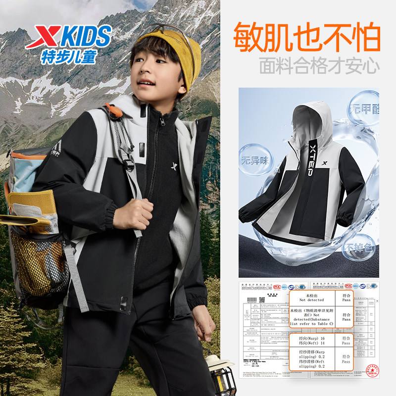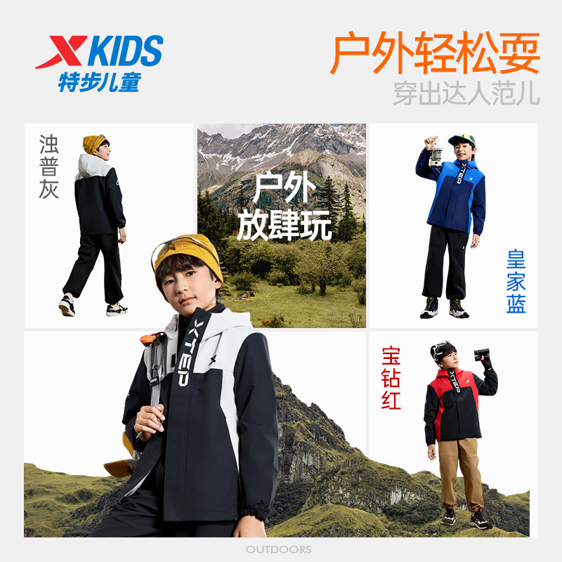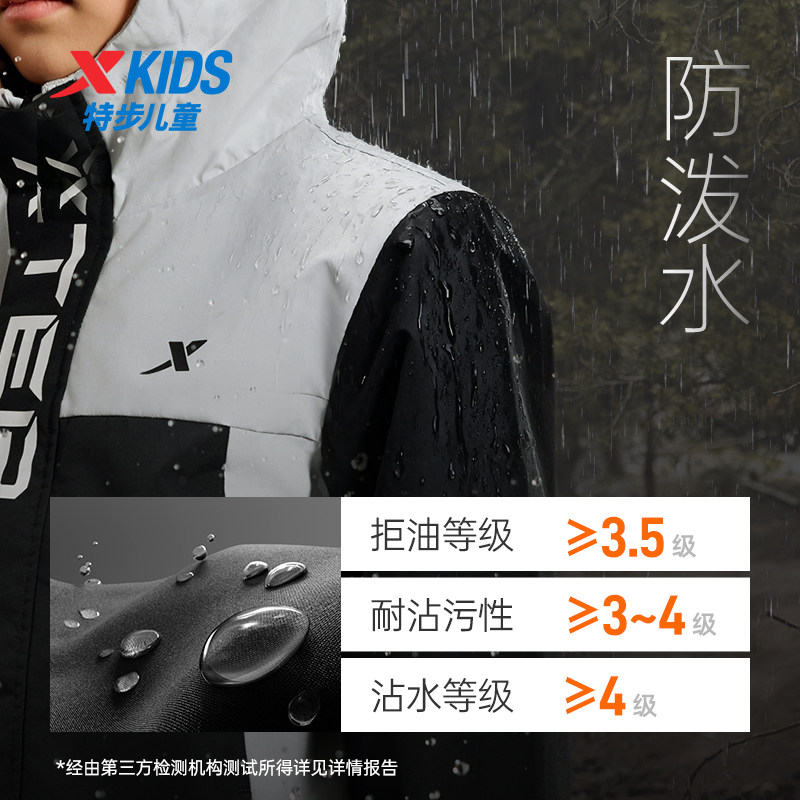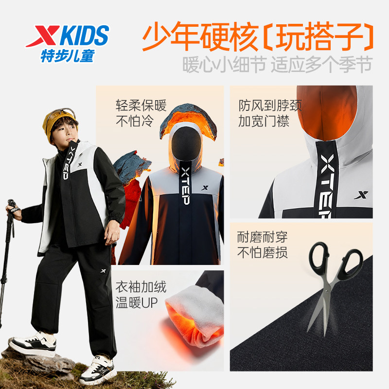 特步童装秋冬新款儿童运动外套男童小中大童防水保暖潮流连帽风衣