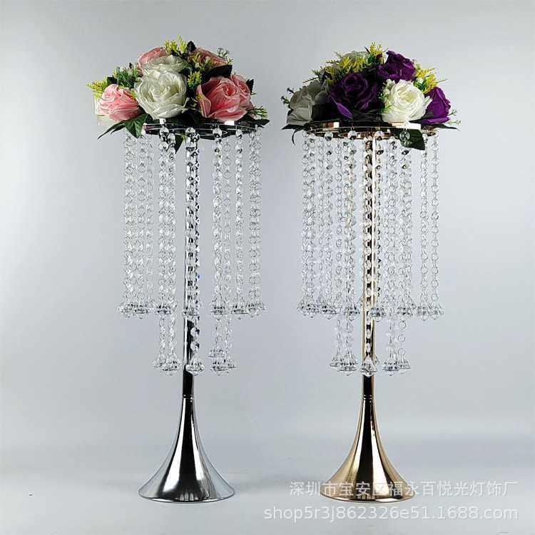 婚庆铁艺花架水晶珠帘路引婚礼现场布置花器桌面装饰用品烛台摆件