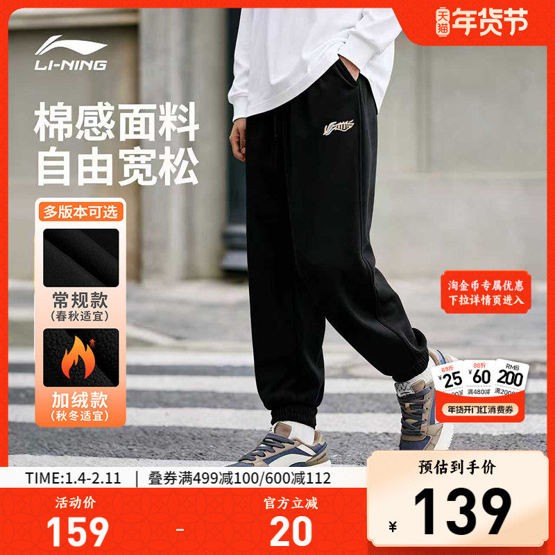 李宁运动裤男士秋冬加绒裤子休闲裤长裤束脚宽松跑步运动长裤卫裤