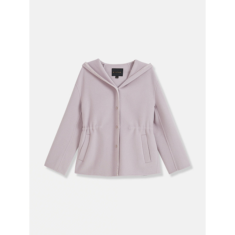 YINER音儿2025冬季新款一手长连帽羊毛羊绒混纺双面呢大衣外套