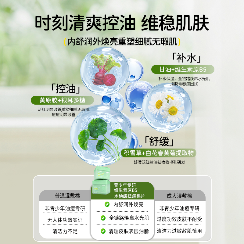 青少年水杨酸棉片祛痘痘印淡化去闭口粉刺黑头清洁保湿敷收缩毛孔