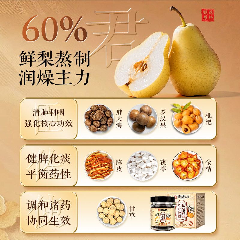 北京同仁堂枇杷秋梨膏官方旗舰店雪梨止润肺咳化成人痰纯无添加糖
