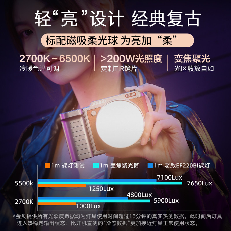 金贝EF40BI复古led双色温摄影灯cob手持调焦便携美颜常亮灯手机人像拍照直播补光灯婚庆户外移动拍摄专用打光