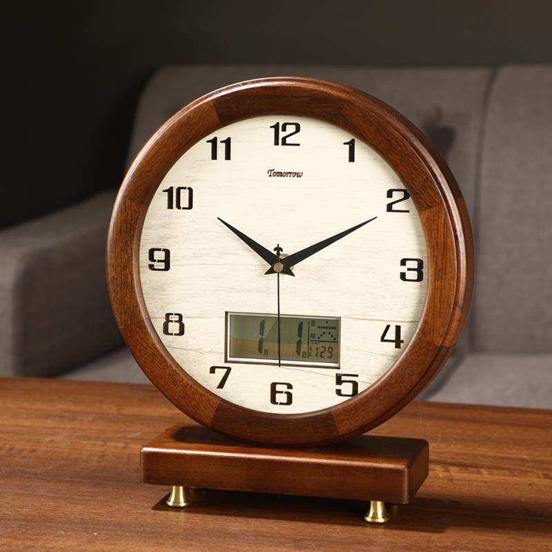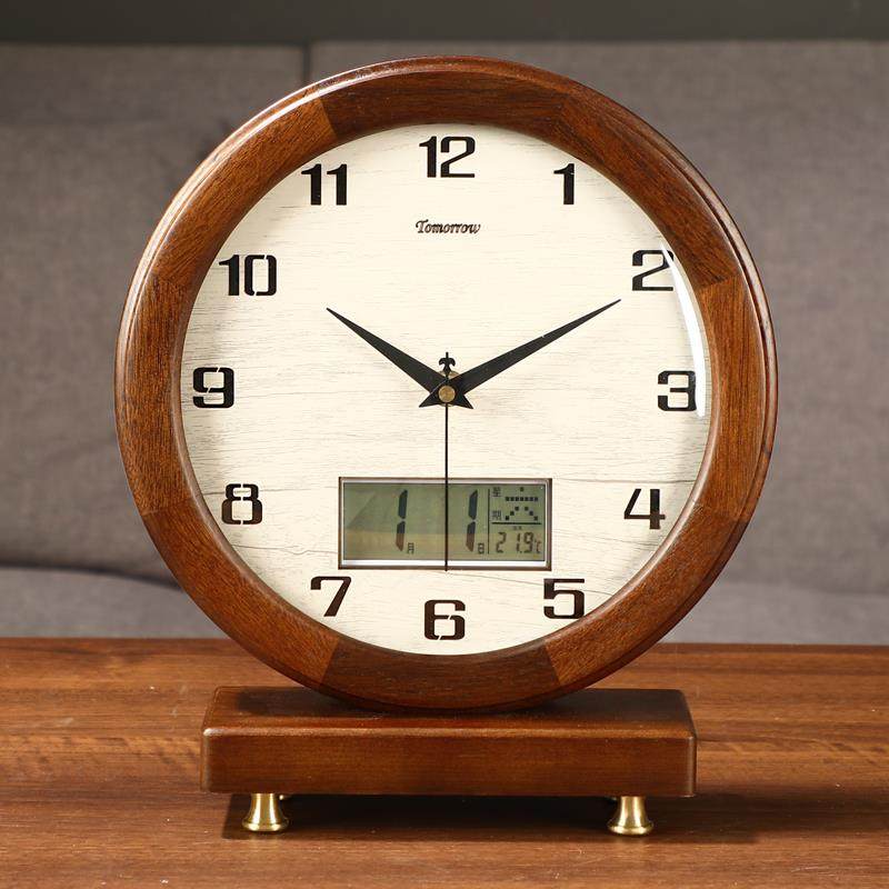 万年历台钟轻奢实木座钟摆钟台式钟表客厅表桌面摆件坐钟装饰时钟