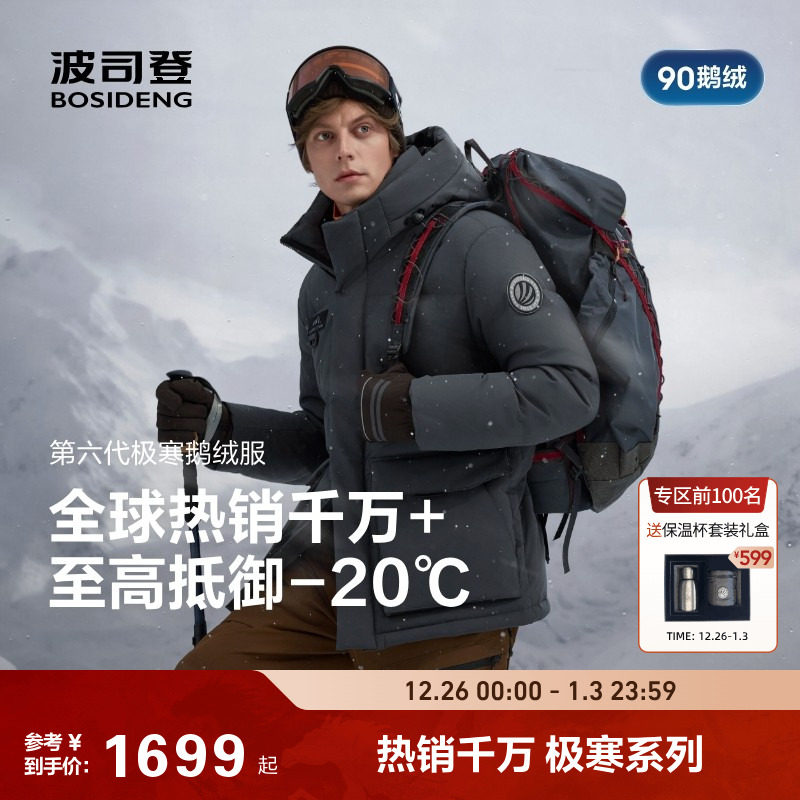 【25新款升级】波司登冬季户外极寒防风短款保暖面包鹅绒羽绒服男