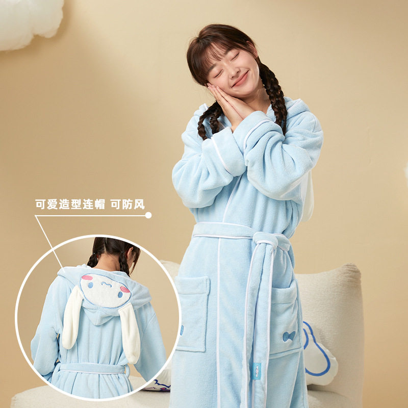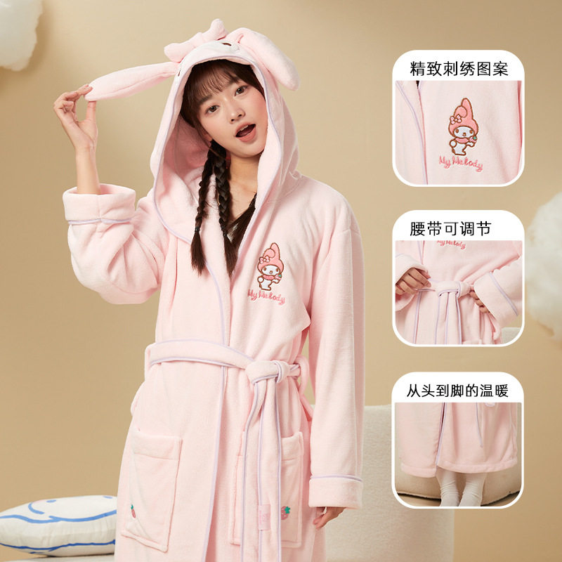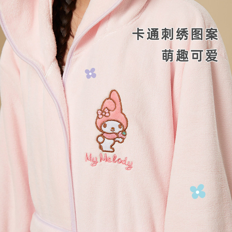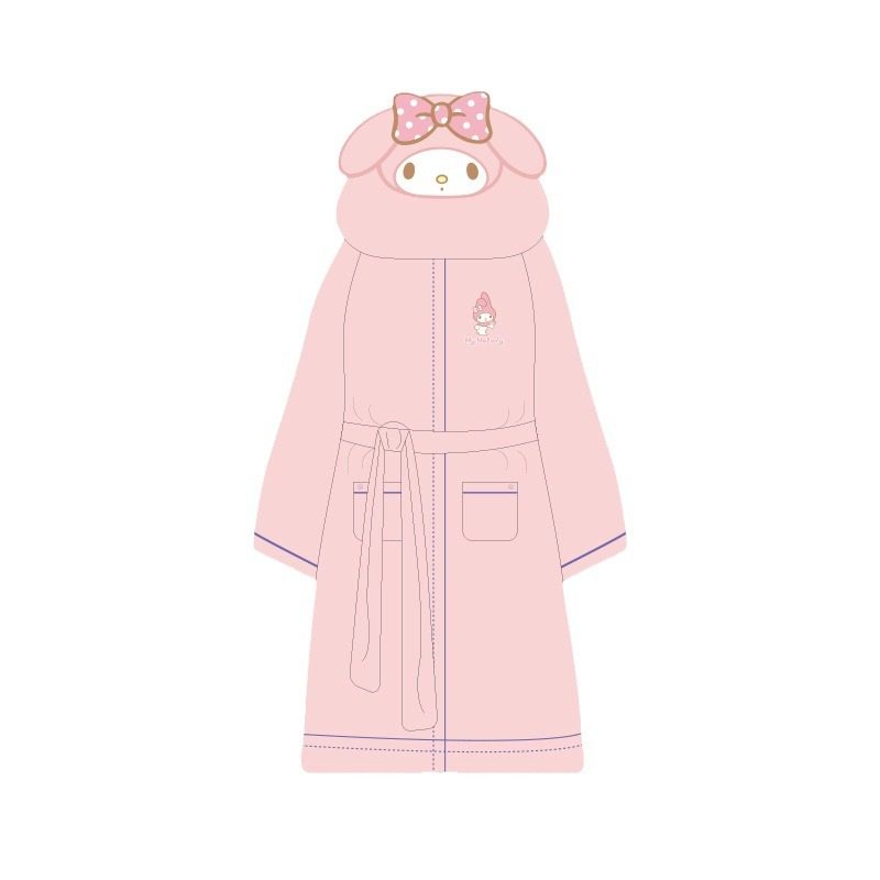 三丽鸥可爱绑带睡袍浴袍一裹即干珊瑚绒萌美乐蒂家居吸水库洛米