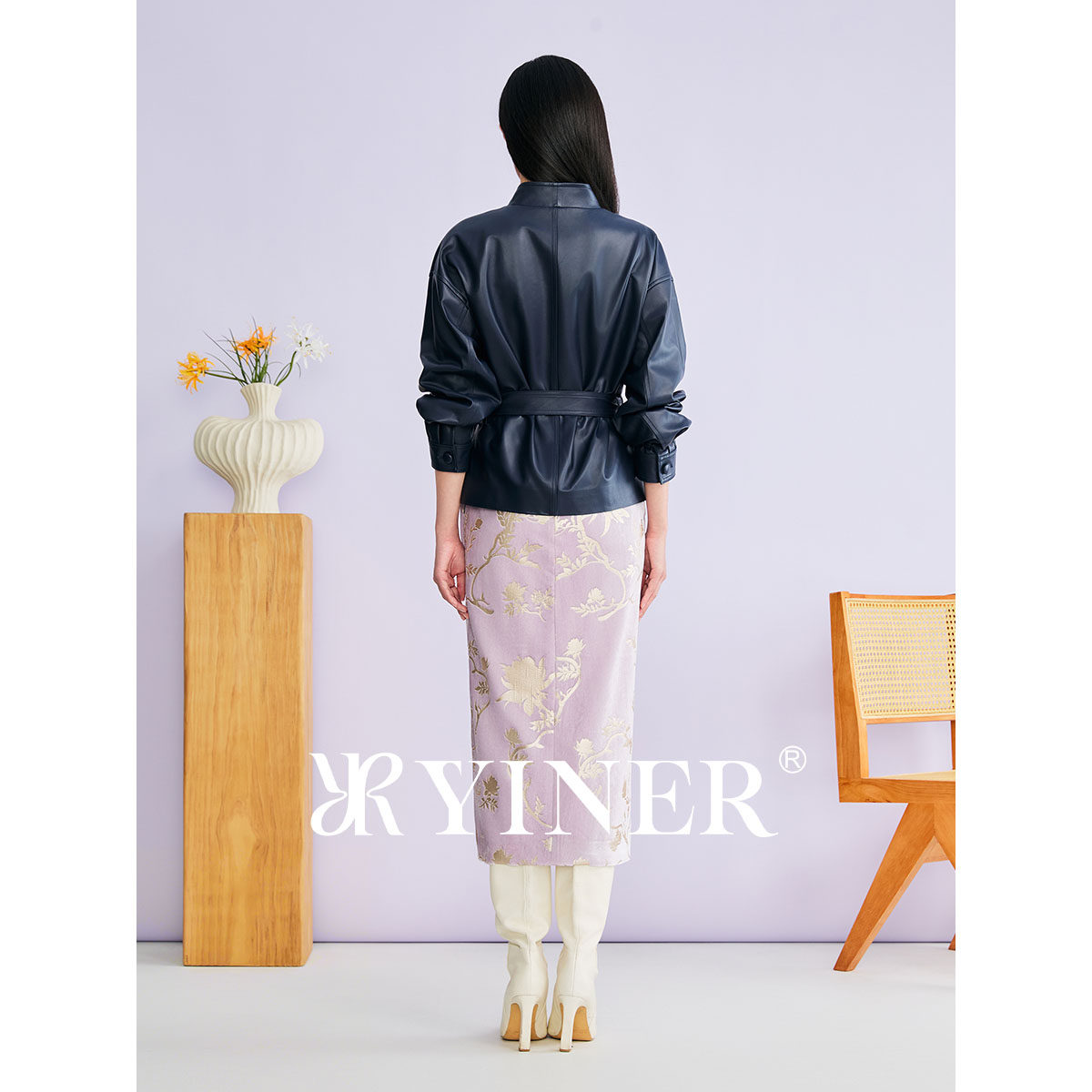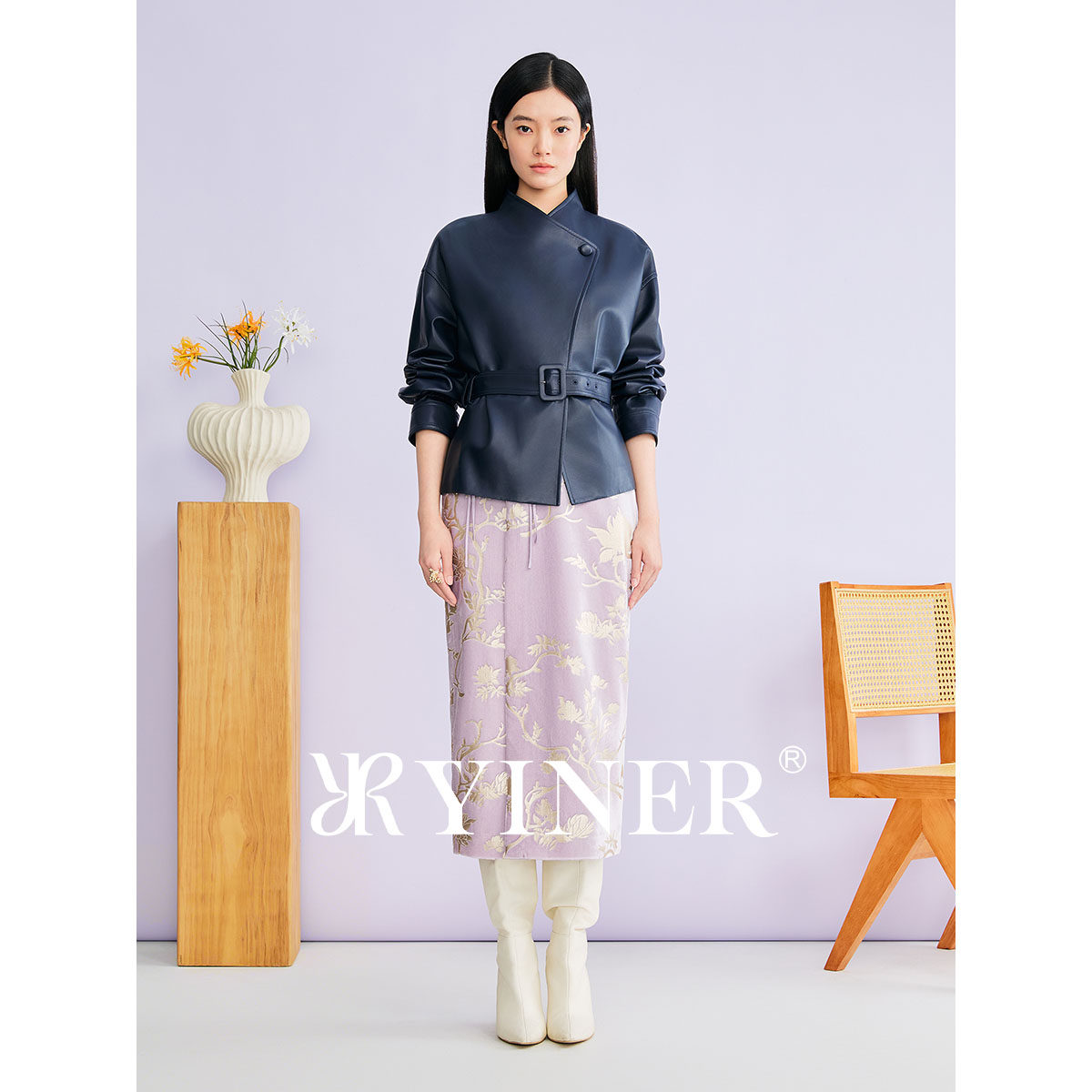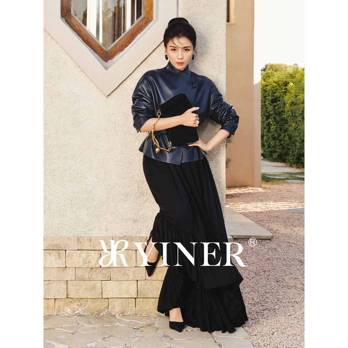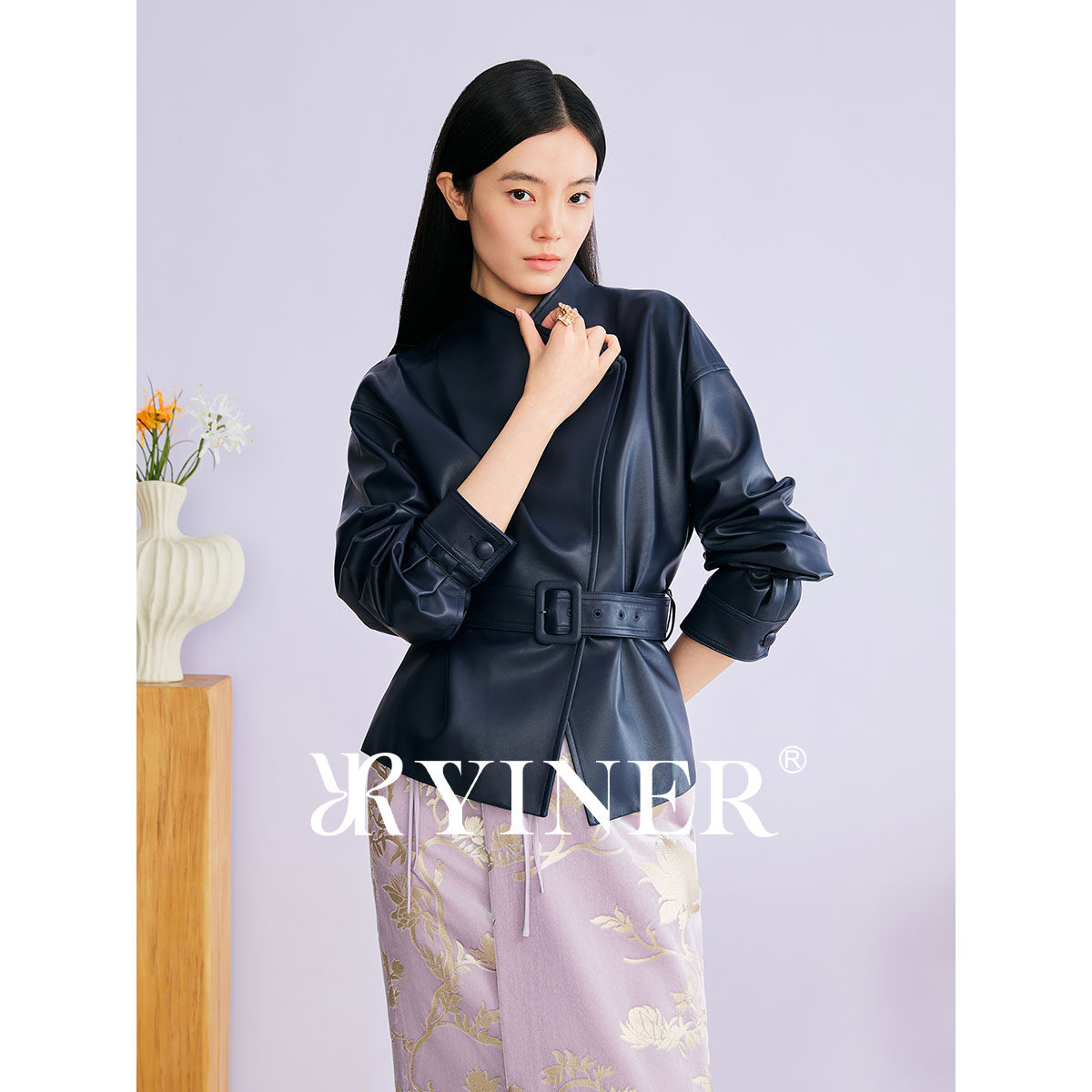【刘涛同款】YINER音儿2026春季新款立领收腰真皮皮衣夹克外套