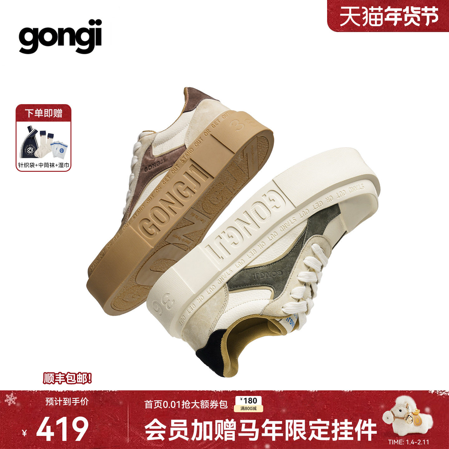 苏有朋|陈哲远同款GONGJI厚底板鞋女小众鞋子增高小白鞋德训鞋男