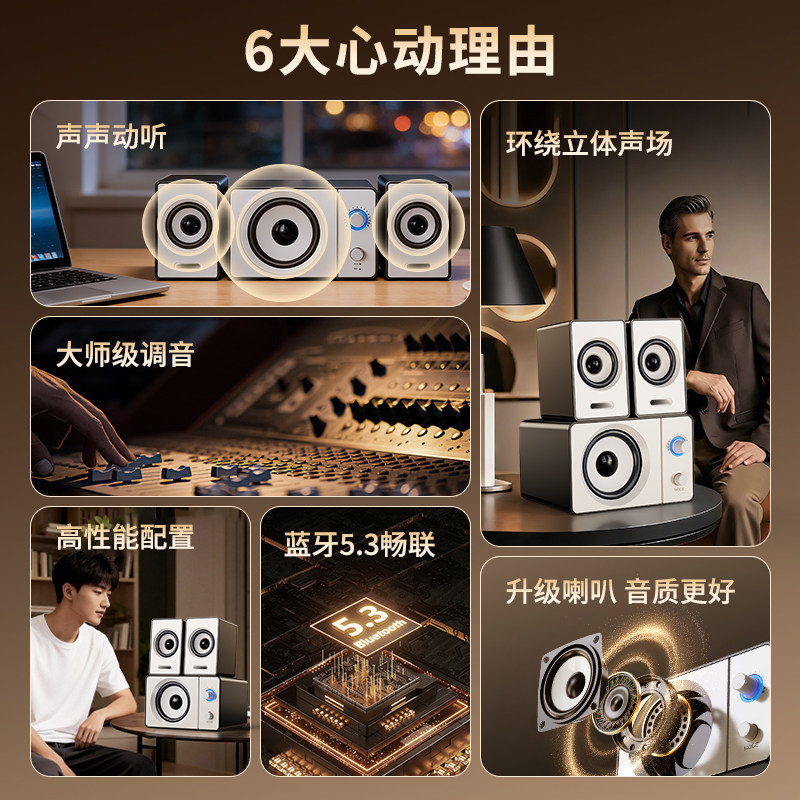 音响电脑音箱台式机电视家用桌面蓝牙超重低音炮usb有线多媒体2.1