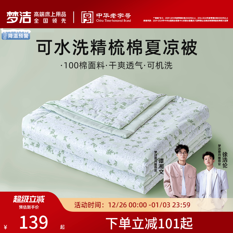 梦洁纯棉夏凉被空调被子夏被可机洗学生宿舍单人纤维被芯25年新款