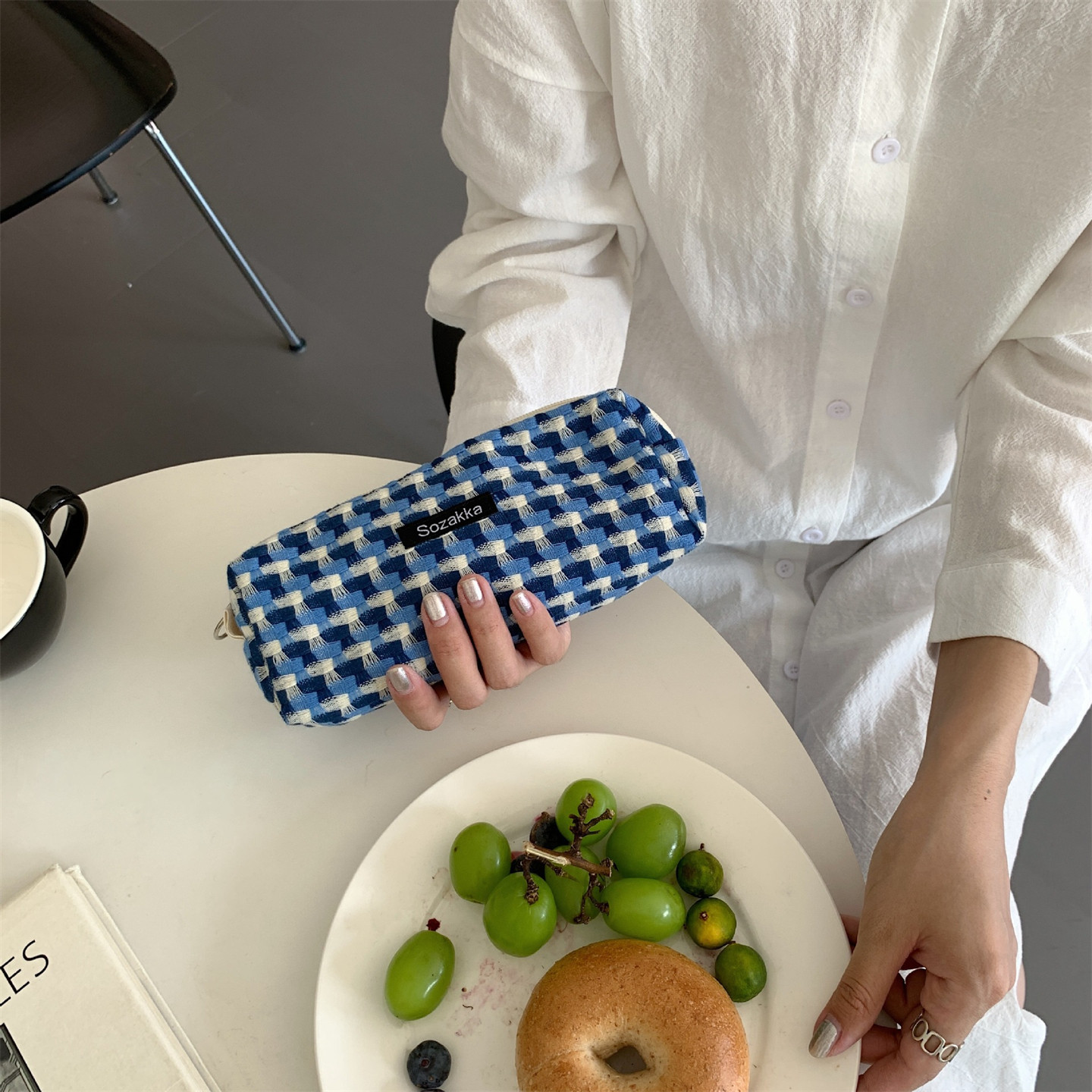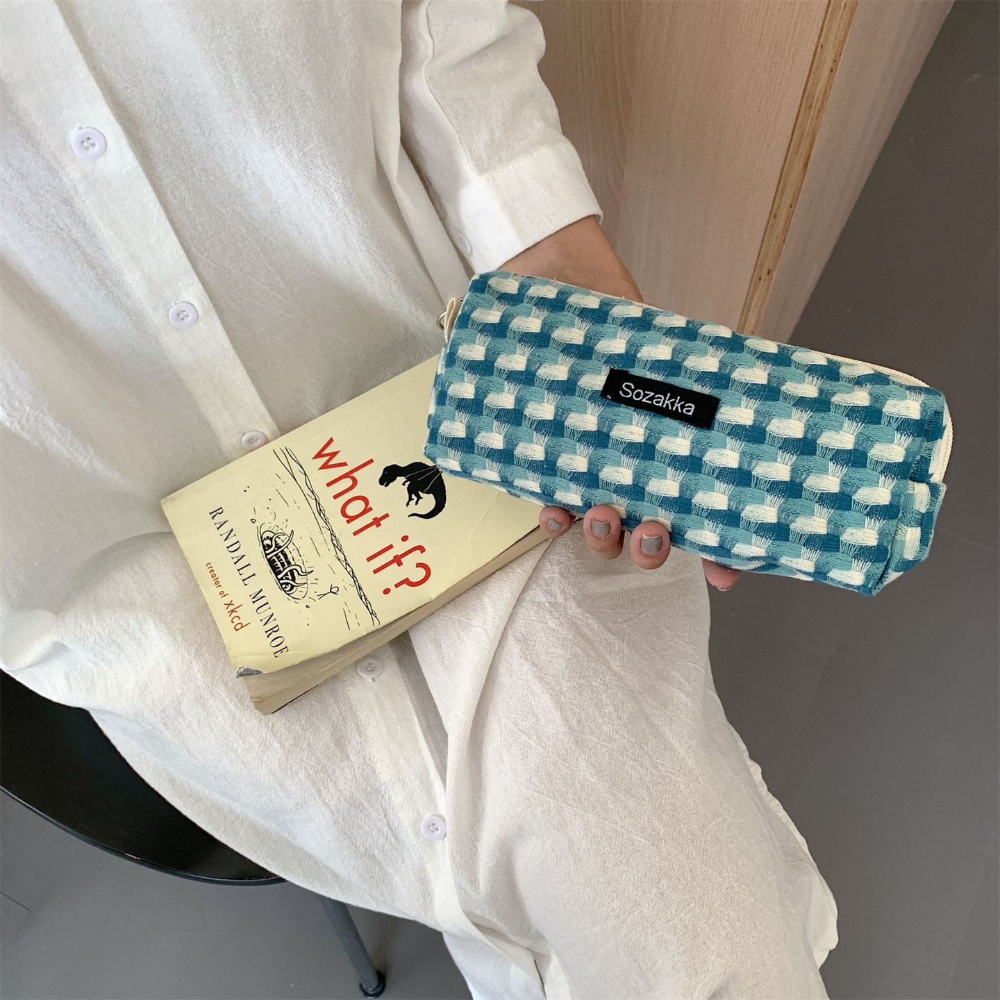 佑木包袋 ins风清爽撞色格纹化妆包学生笔袋便携迷你拉链收纳袋女