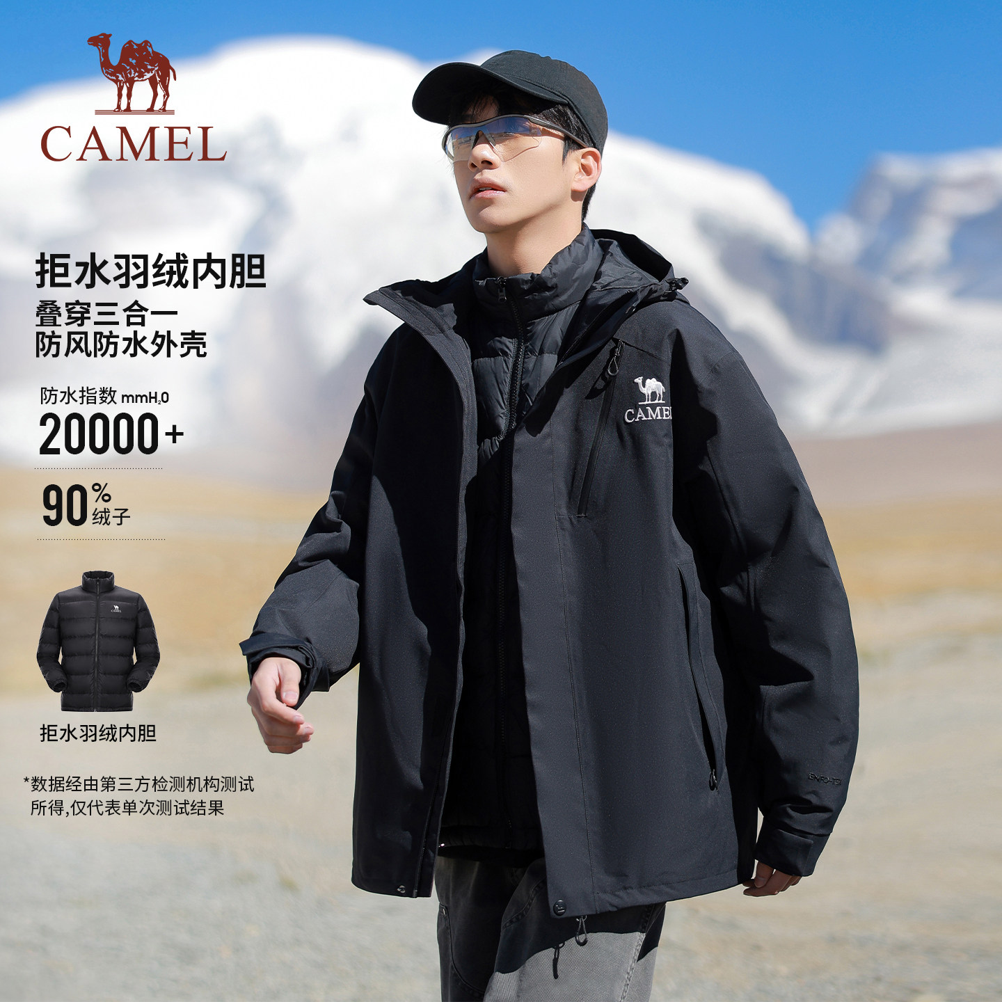 骆驼3514冲锋衣男三合一鹅绒羽绒服冬季外套女户外防水黑色登山服
