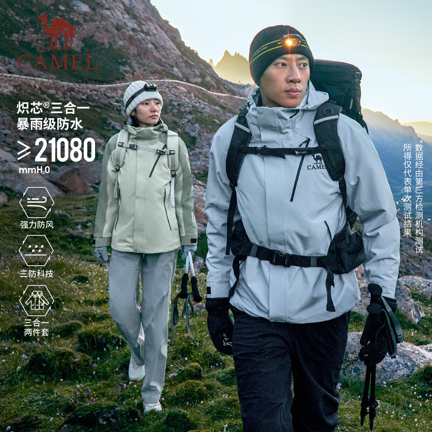 骆驼户外雨神冲锋衣男三合一羽绒服冬季防水外套女三防旅游滑雪服