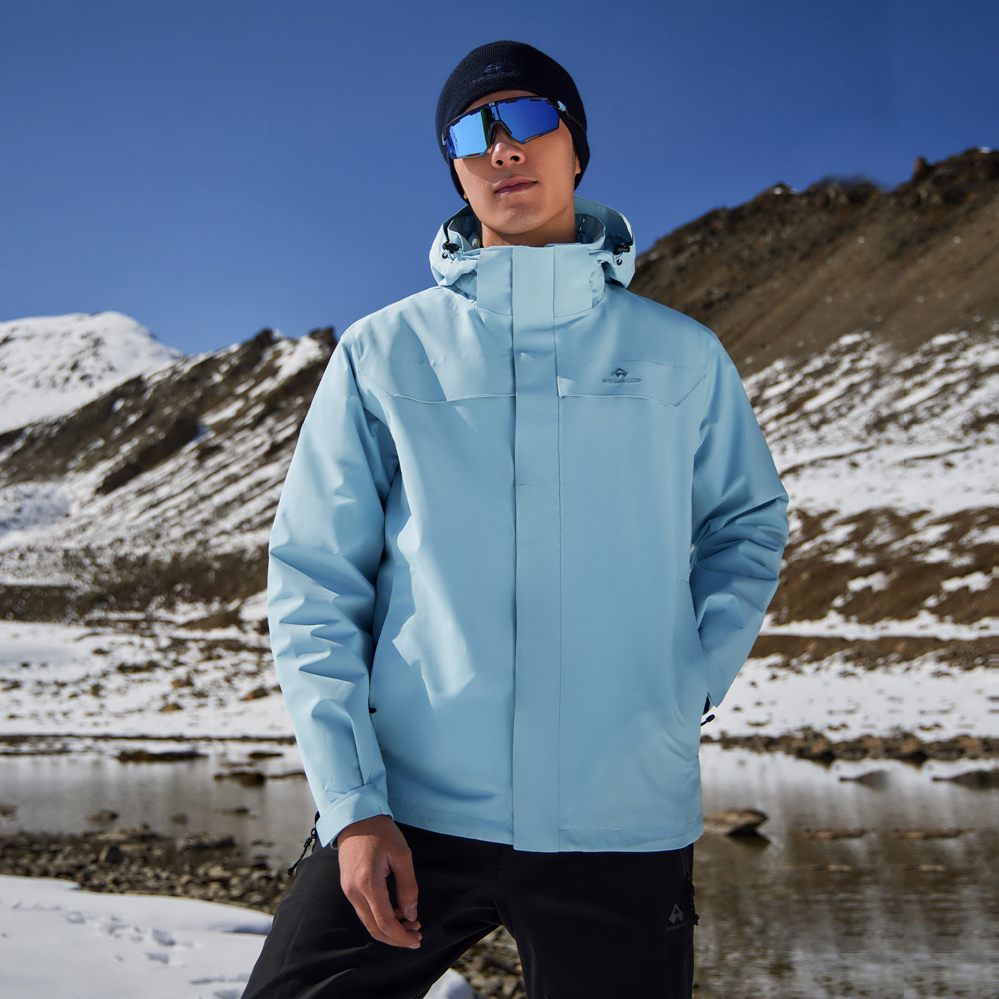 【月光蓝】骆驼户外冲锋衣三合一女防水滑雪服冬季旅游蓝色外套男
