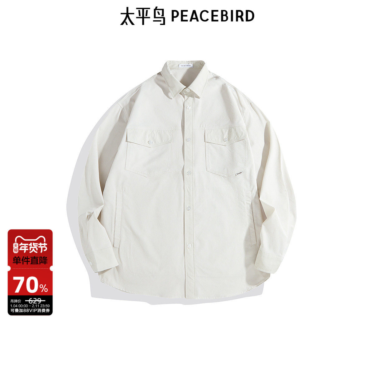 太平鸟男装 外穿式衬衫秋季宽松时尚同色系刺绣衬衣外套潮流