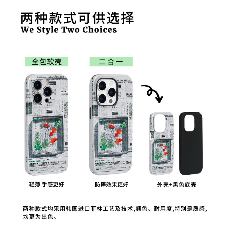 纸上金鱼 适用iPhone苹果16promax新款手机壳十六15plus日式复古风14创意艺术感设计13小众不撞款12全包防摔