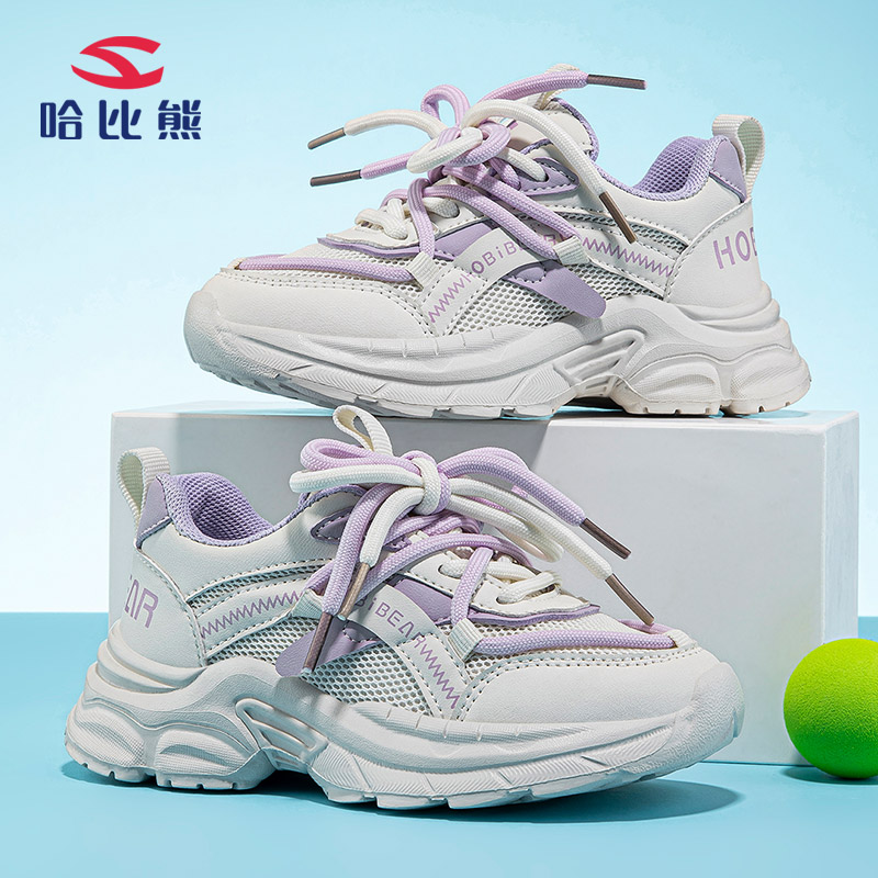 哈比熊女童网鞋老爹鞋炸街爆款2025春夏网面透气洋气女孩轻便运动