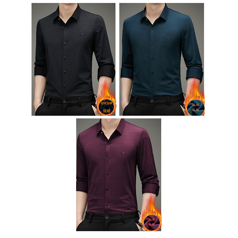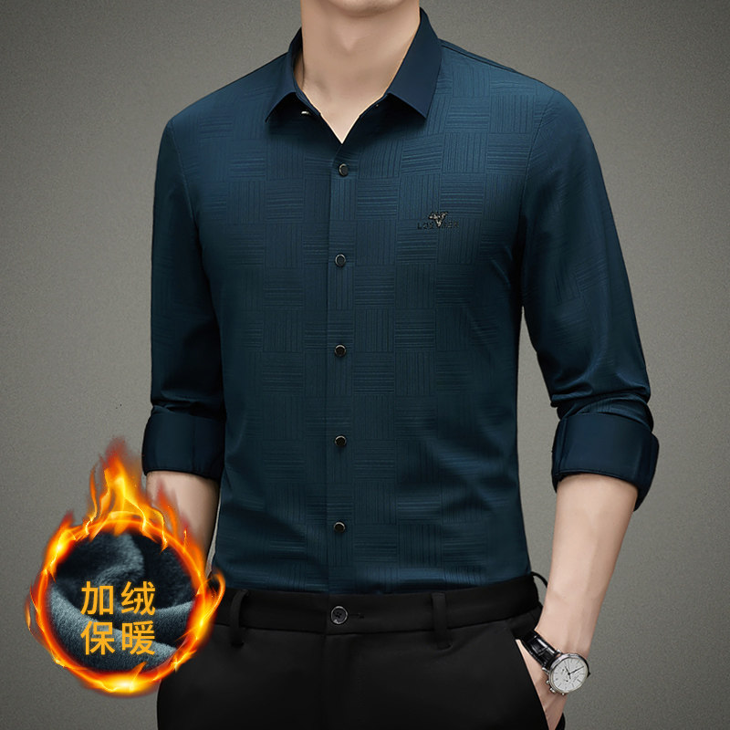 罗蒙加绒衬衫男士冬季商务休闲保暖免烫抗皱加厚衬衣上衣打底衫