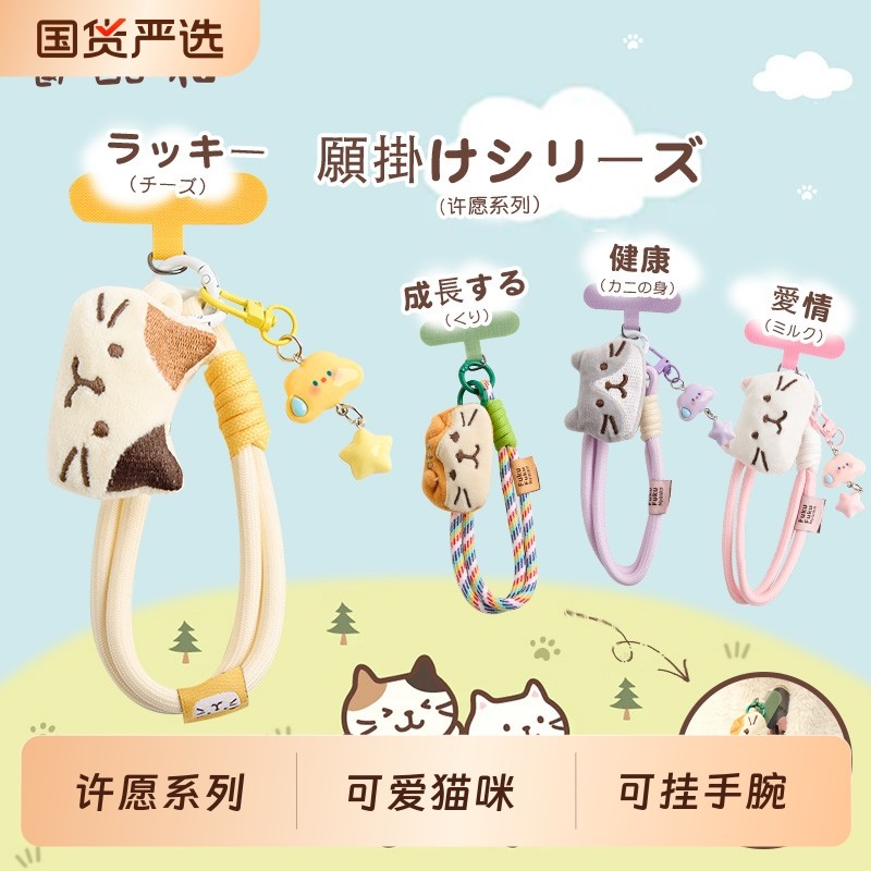 富酷猫手机链挂绳手机防丢绳手机挂件手腕绳精致毛绒玩偶钥匙扣子