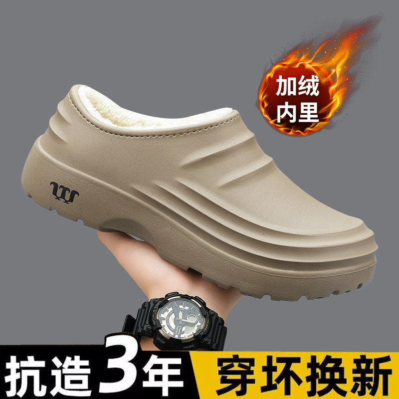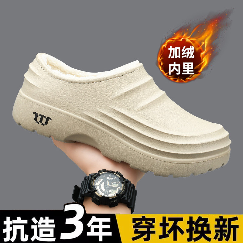 厨师鞋秋冬加绒加厚保暖酒店专用餐厅防水一脚蹬厨房服务员工作鞋