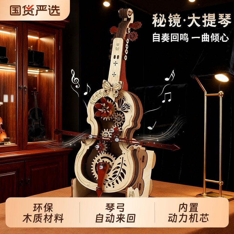 秘境大提琴音乐盒八音盒diy手工生日礼物积木质拼装拼图摆件立体