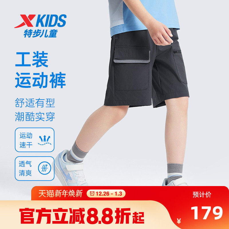 【商场同款】特步童装儿童短裤夏季新款男童宽松运动大童工装裤子