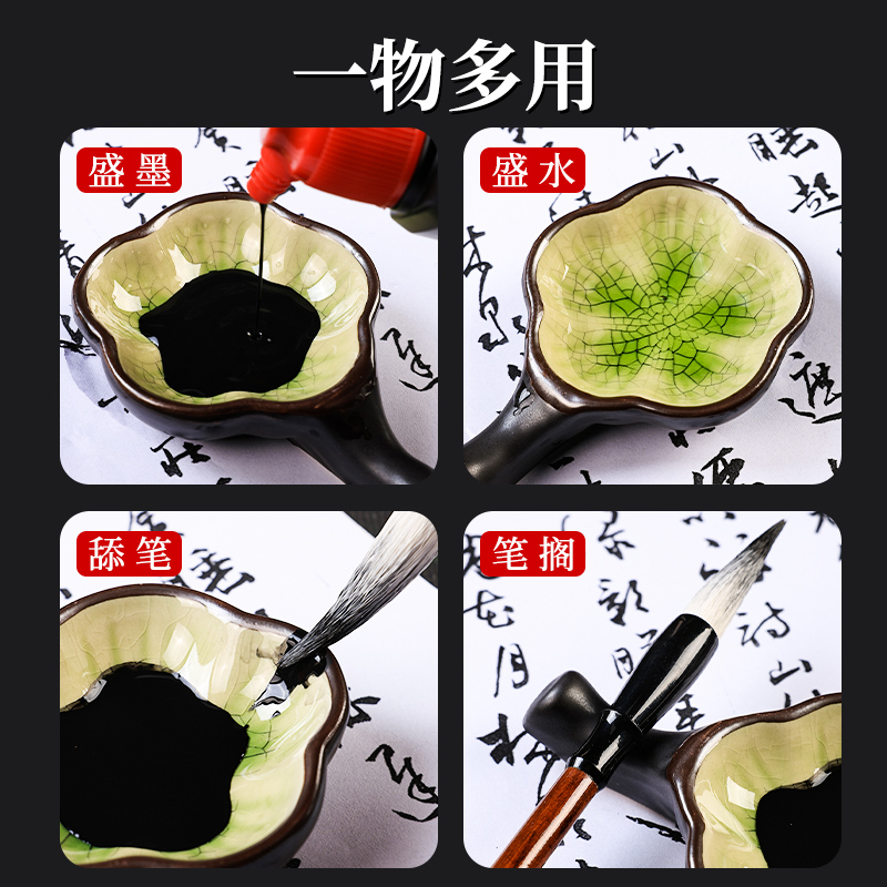 陶瓷墨碟多功能书法墨蝶毛笔架墨汁砚台墨盘笔洗墨盒国画笔洗笔搁