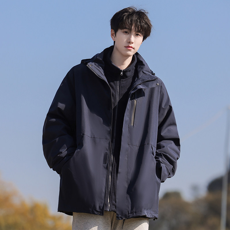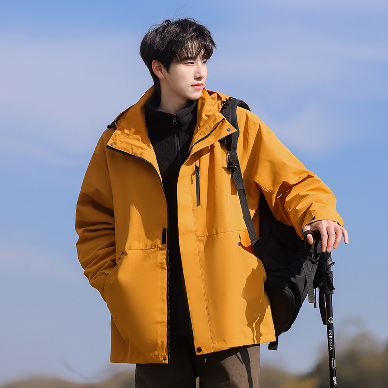 骆驼男装夹克春秋保暖三合一户外三防冲锋衣外套内胆防水徒步登山
