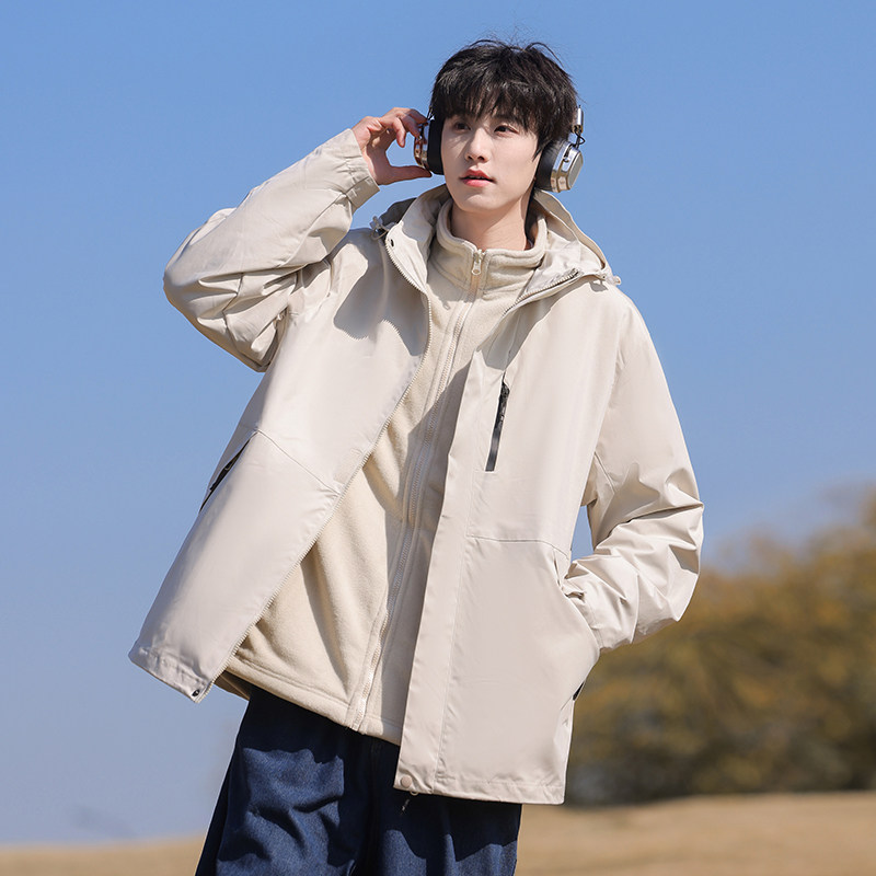Jeep吉普户外冲锋外套男女三合一新款抓绒内胆情侣防风防雨登山服