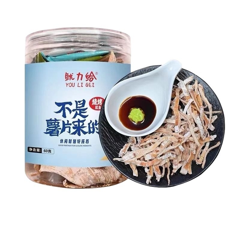 即食烧烤鱿鱼干手撕芥末鱿鱼丝即食烧烤鱿鱼KTV酒吧追剧休闲60g罐