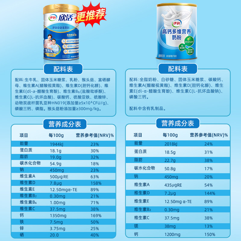 伊利欣活中老年奶粉高钙营养品成人奶粉送礼老年人正品官方旗舰店