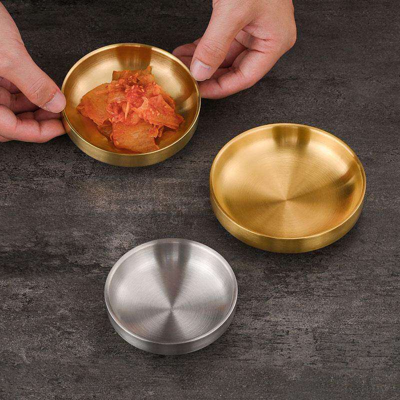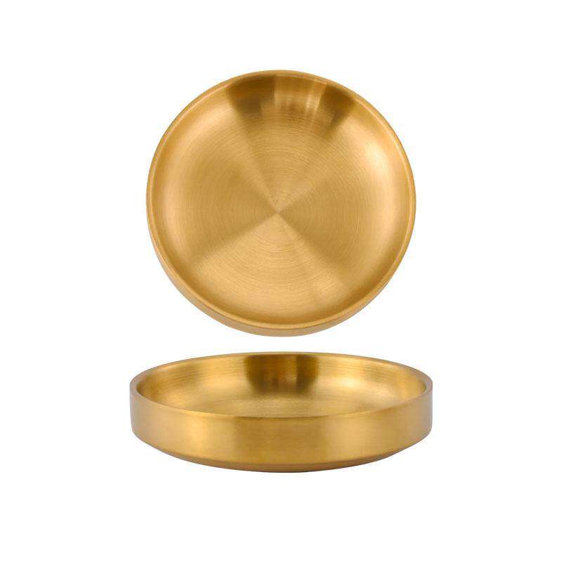 韩式不锈钢小菜碟子双层金色泡菜碟韩国烤肉店蘸料碟调料小碗味碟