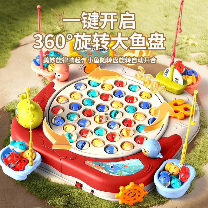 儿童电动磁性钓鱼玩具磁性旋转盘亲子互动益智早教宝宝生日礼物