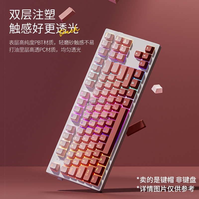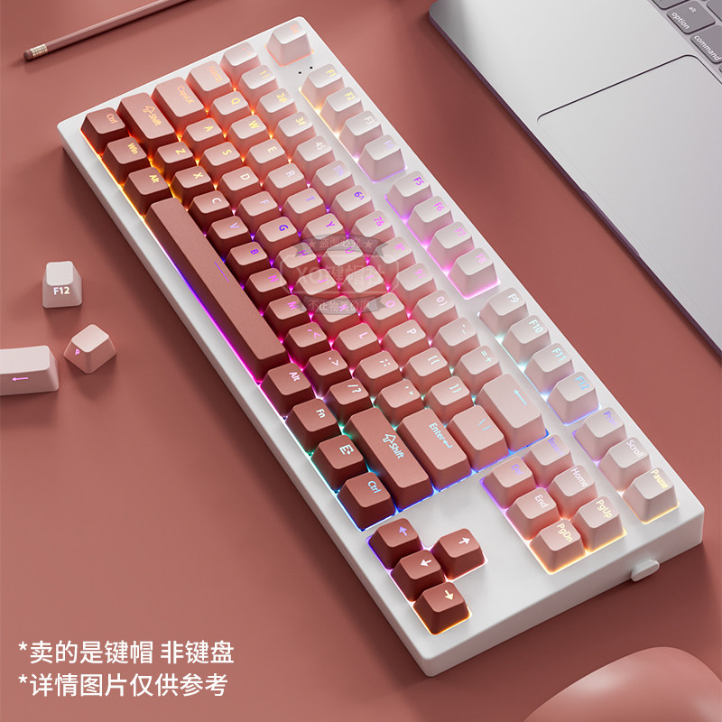 腮红正刻PBT渐变透光粉色机械键盘键帽75/87/108键小蜜蜂made68