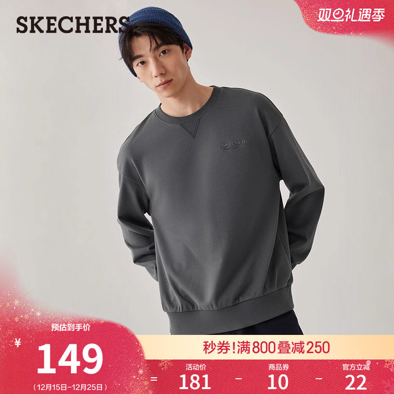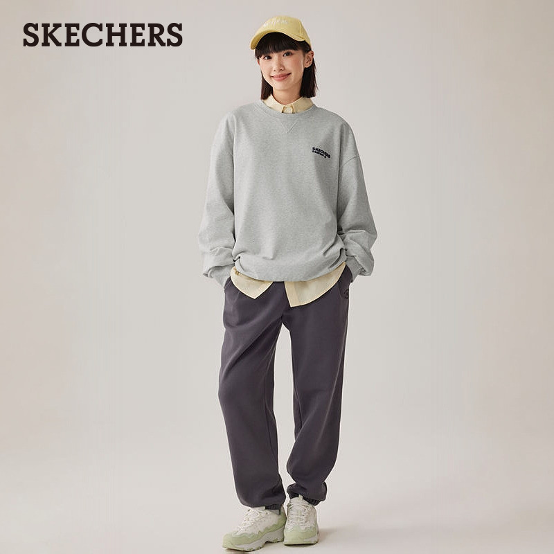 斯凯奇2025年秋冬季新款男女款宽松圆领套头卫衣字母印花长袖上衣