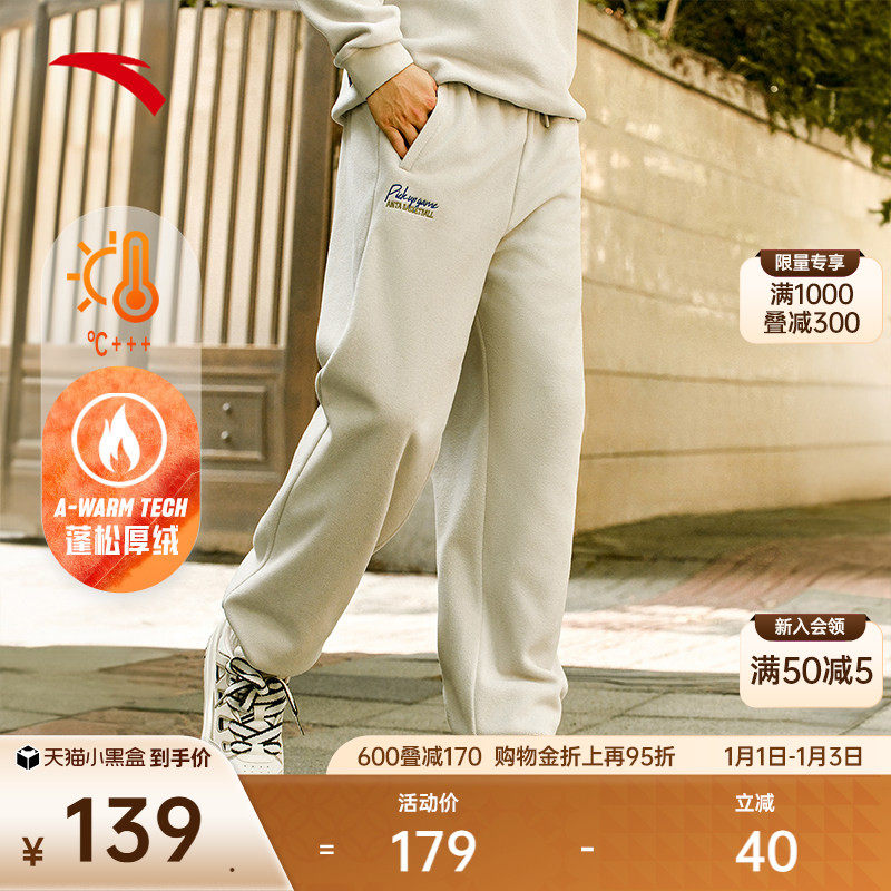 安踏摇粒绒长裤男士冬季新款加绒保暖针织休闲运动裤宽松束脚卫裤