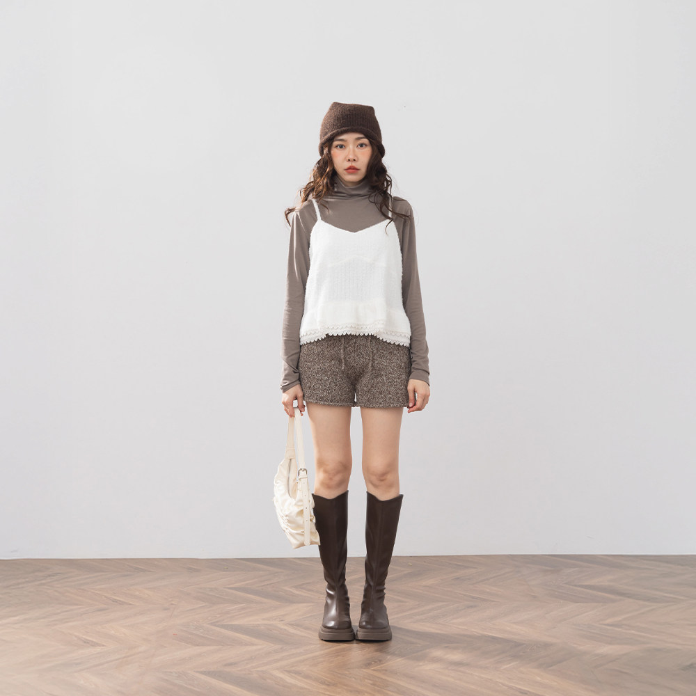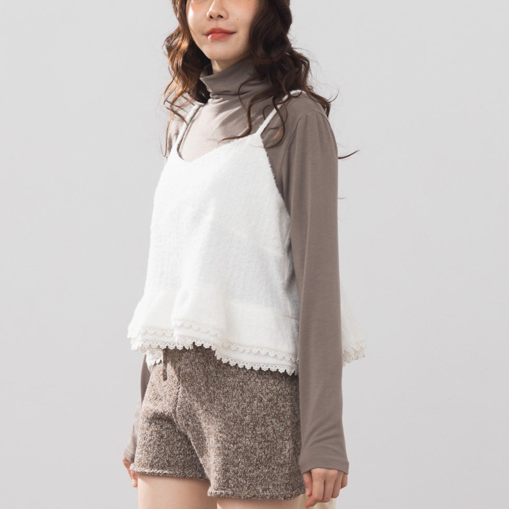 QUEENSHOP 2025秋冬新品女装蕾丝下摆毛绒罩衫背心米白01099423
