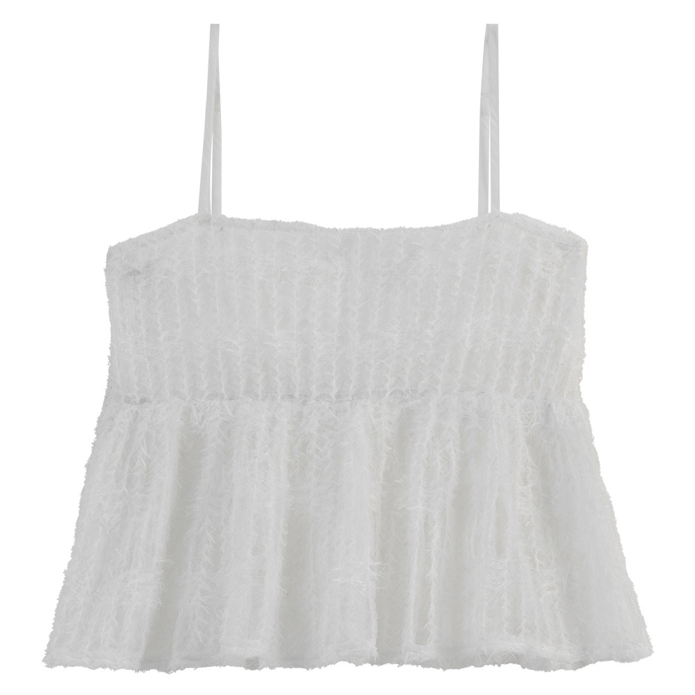 QUEENSHOP 2025秋冬新品女装立体羽毛透肤细肩网纱罩衫01099106