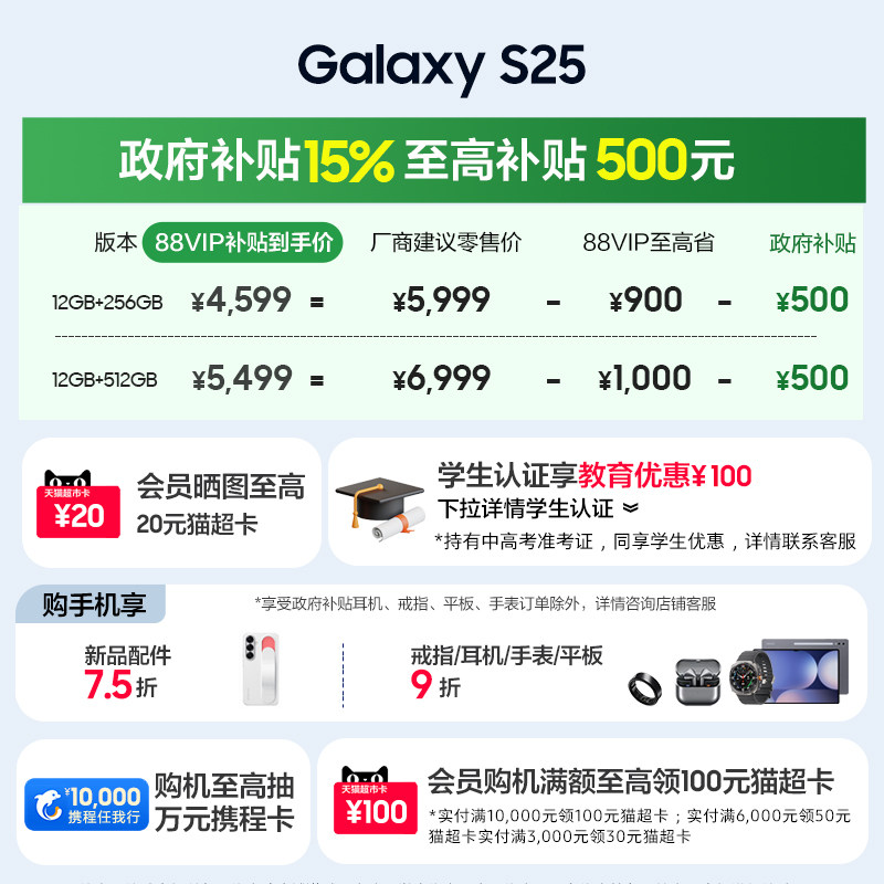 【88VIP至高省1400元】Samsung/三星Galaxy S25全新拍照游戏超轻薄AI智能手机骁龙8至尊版