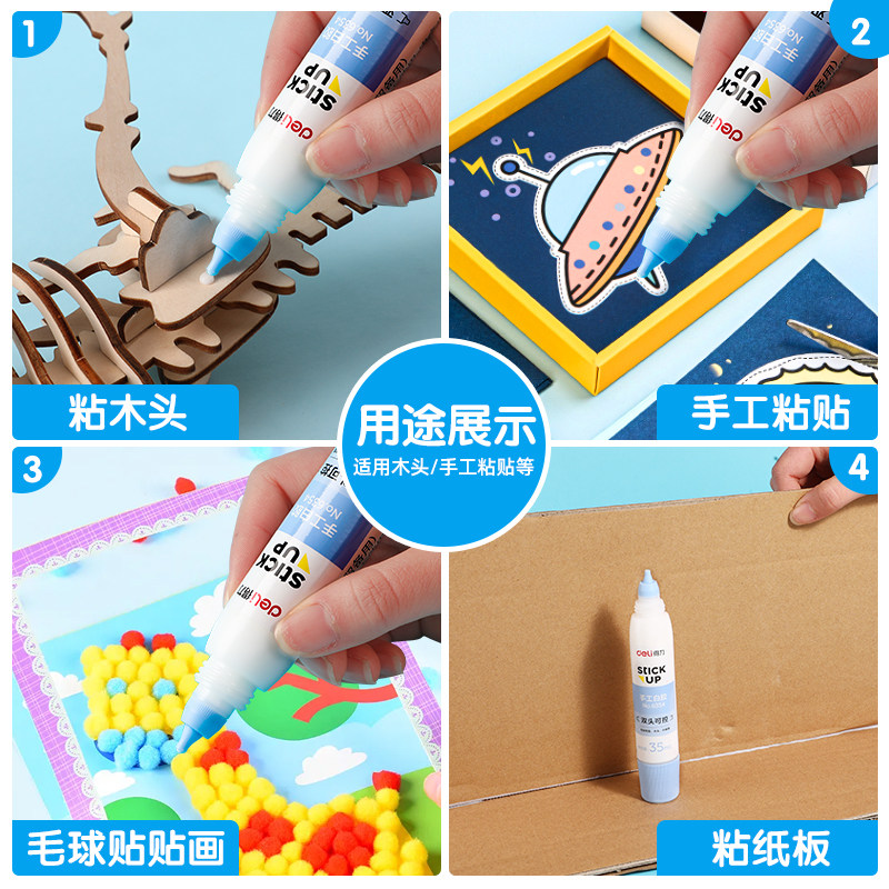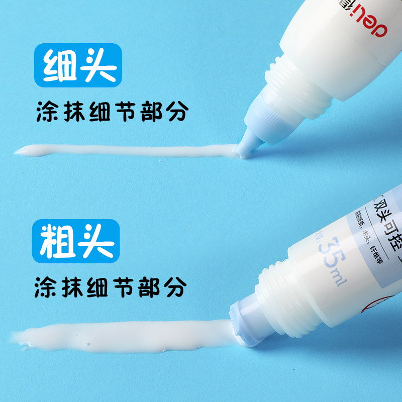 得力手工白胶儿童diy美术小学生幼儿园无毒可水洗双头可控白乳胶宝宝用高粘度木工胶强力胶水模型液体史莱姆