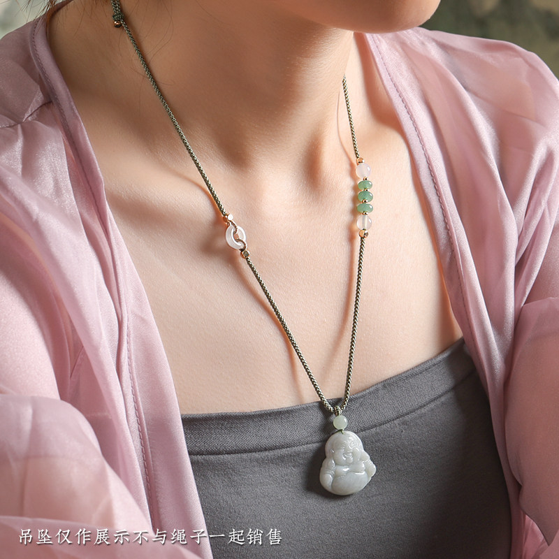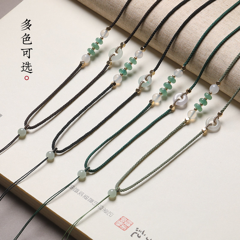 高档手工编织项链绳玉佩吊坠挂绳挂脖翡翠玉坠玉佛平安扣男女朱砂