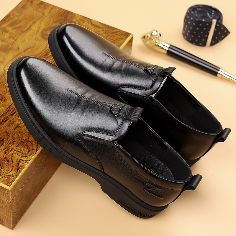 老人头男鞋冬季皮鞋男士中年商务休闲皮鞋真皮加绒软底舒适爸爸鞋