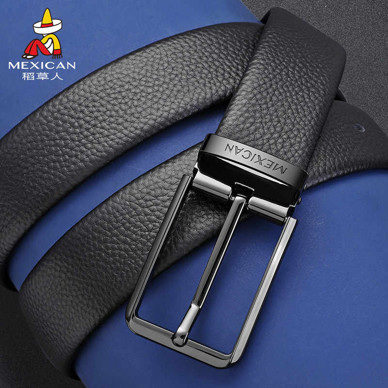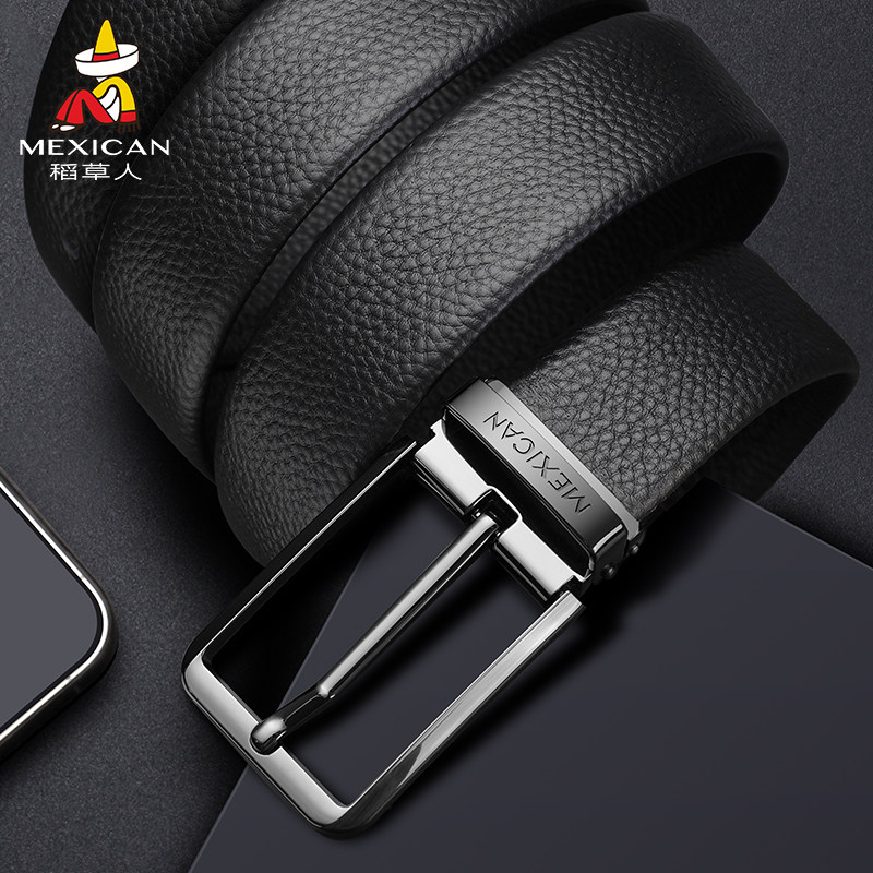 稻草人皮带男士针扣真皮腰带头层牛皮商务潮2025新款年轻人裤腰带