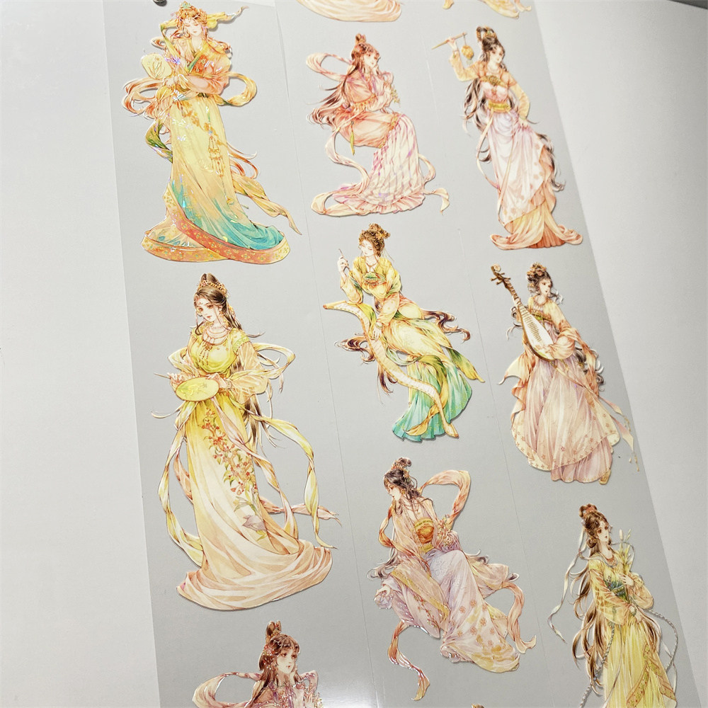 手帐分装胶带g13罗袖动香品味手帐美女人物古风PET素材账流麻贴纸