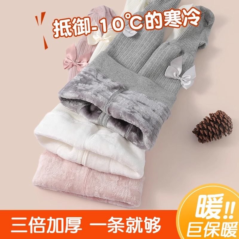 儿童连裤袜白色女童打底袜加绒加厚秋冬款宝宝打底裤女婴儿连体袜