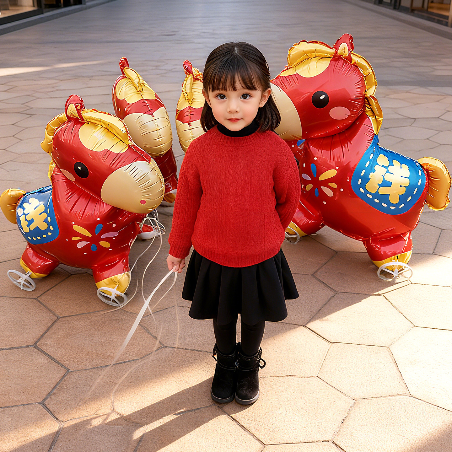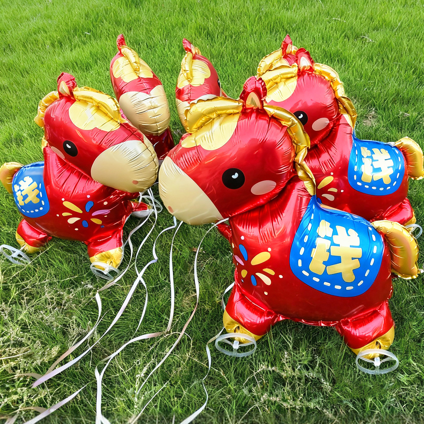 马年生肖卡通小马气球新年铝膜带轮子拉绳走路儿童礼品拍照道具