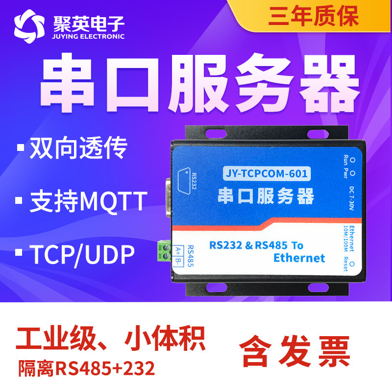聚英双串口服务器RS232+RS485转以太网口TCPIP UDP网络透传Modbus协议转换 MQTT通讯