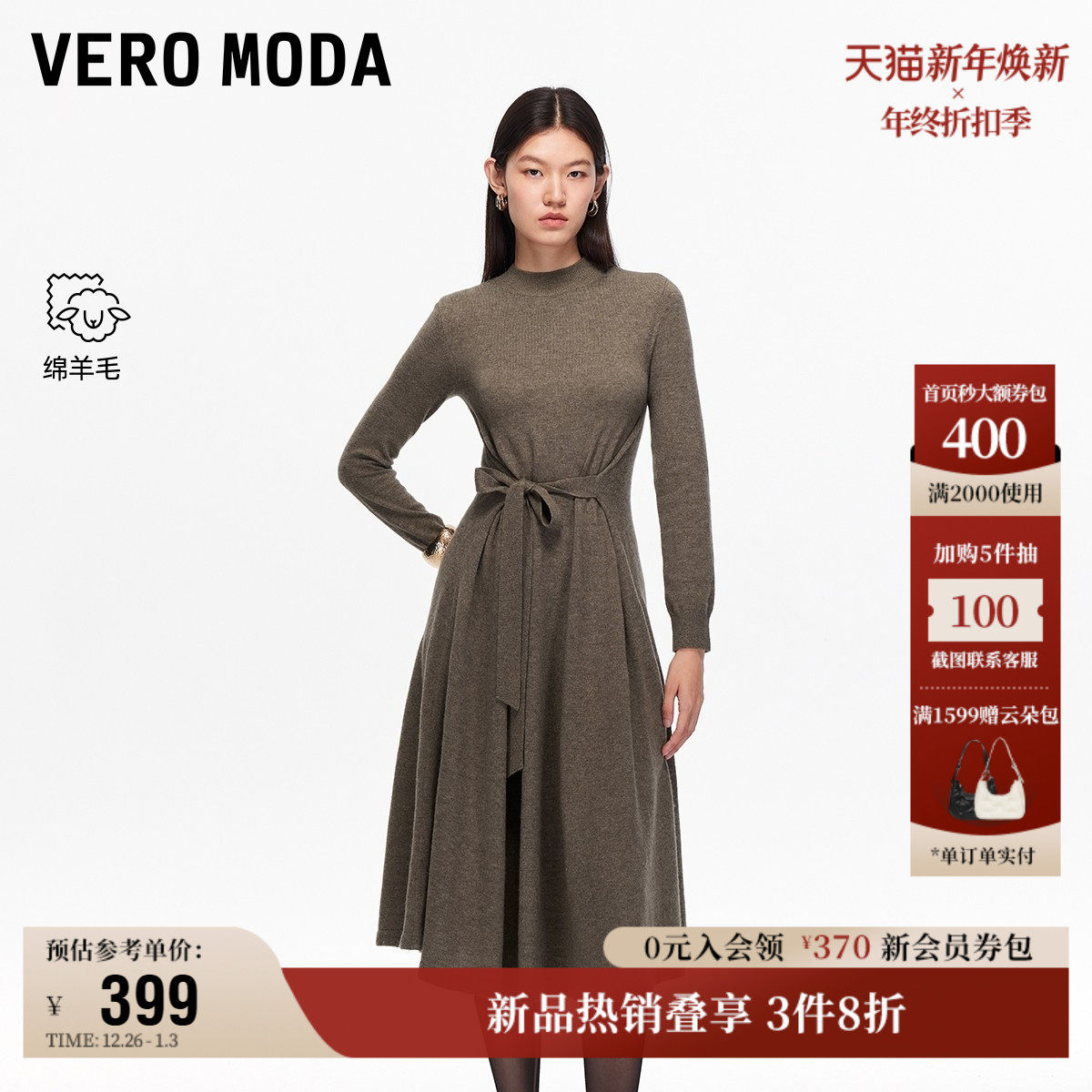 Vero Moda奥莱连衣裙女2025秋冬新款含绵羊毛立领系带针织裙裙子