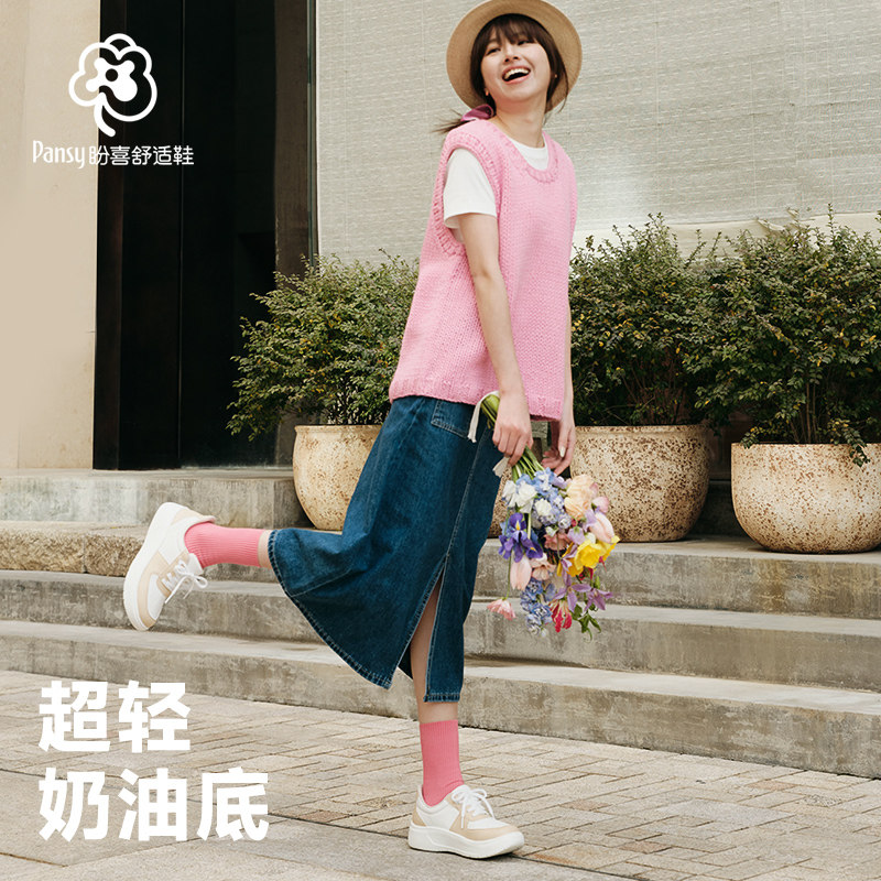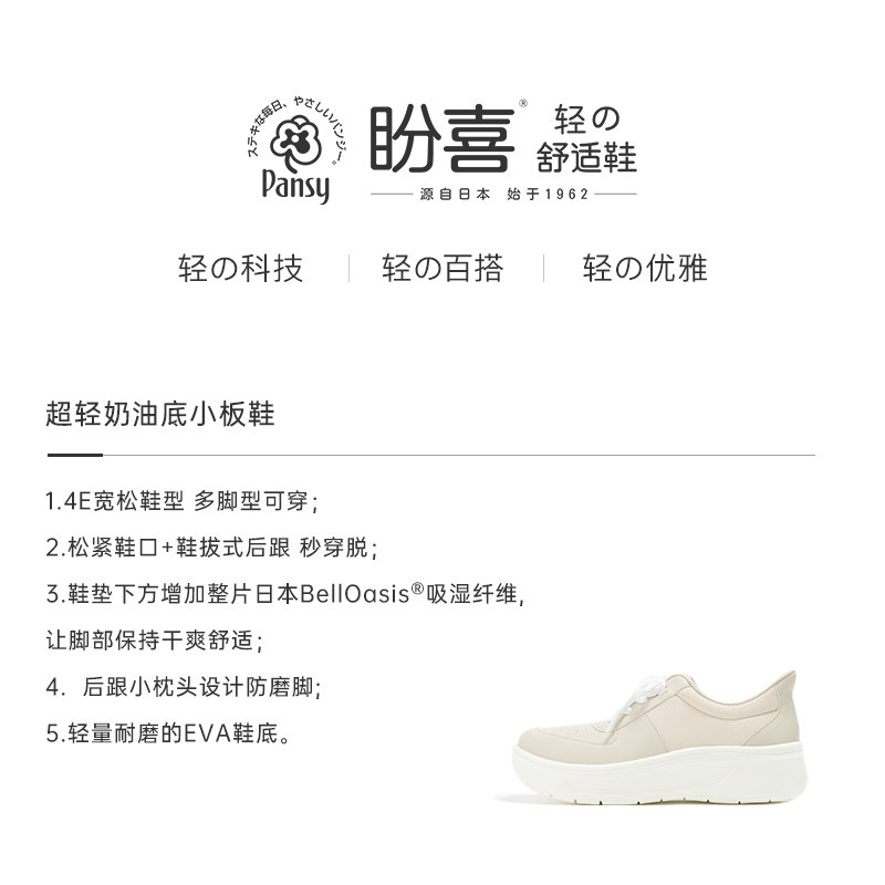 Pansy盼喜小白鞋日本女鞋休闲百搭厚底轻便舒适板鞋2025年秋冬款